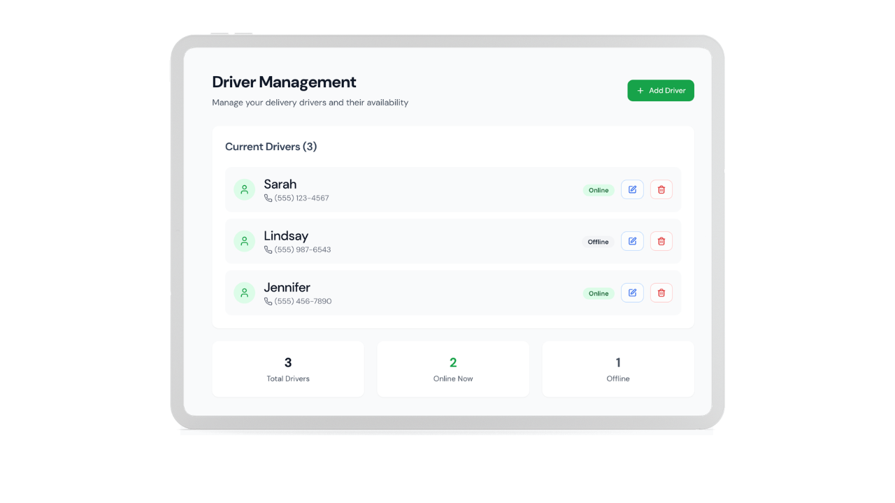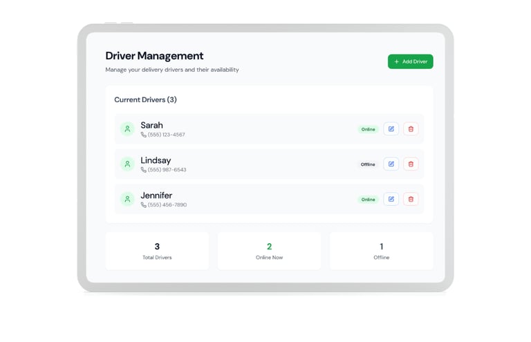 Set your menu, assign drivers, and go live the same day. No implementation team, no setup fees, no waiting. Our world-class support team is always an email or phone call away.